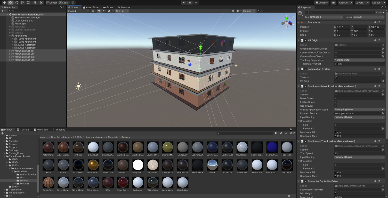 For the level design, we created a basic framework to guide the experience. After several revisions, we designed an apartment that is spacious yet easy to decorate. Each team member focused on a specific time period, and I developed the 1990s section and interactions for the future.