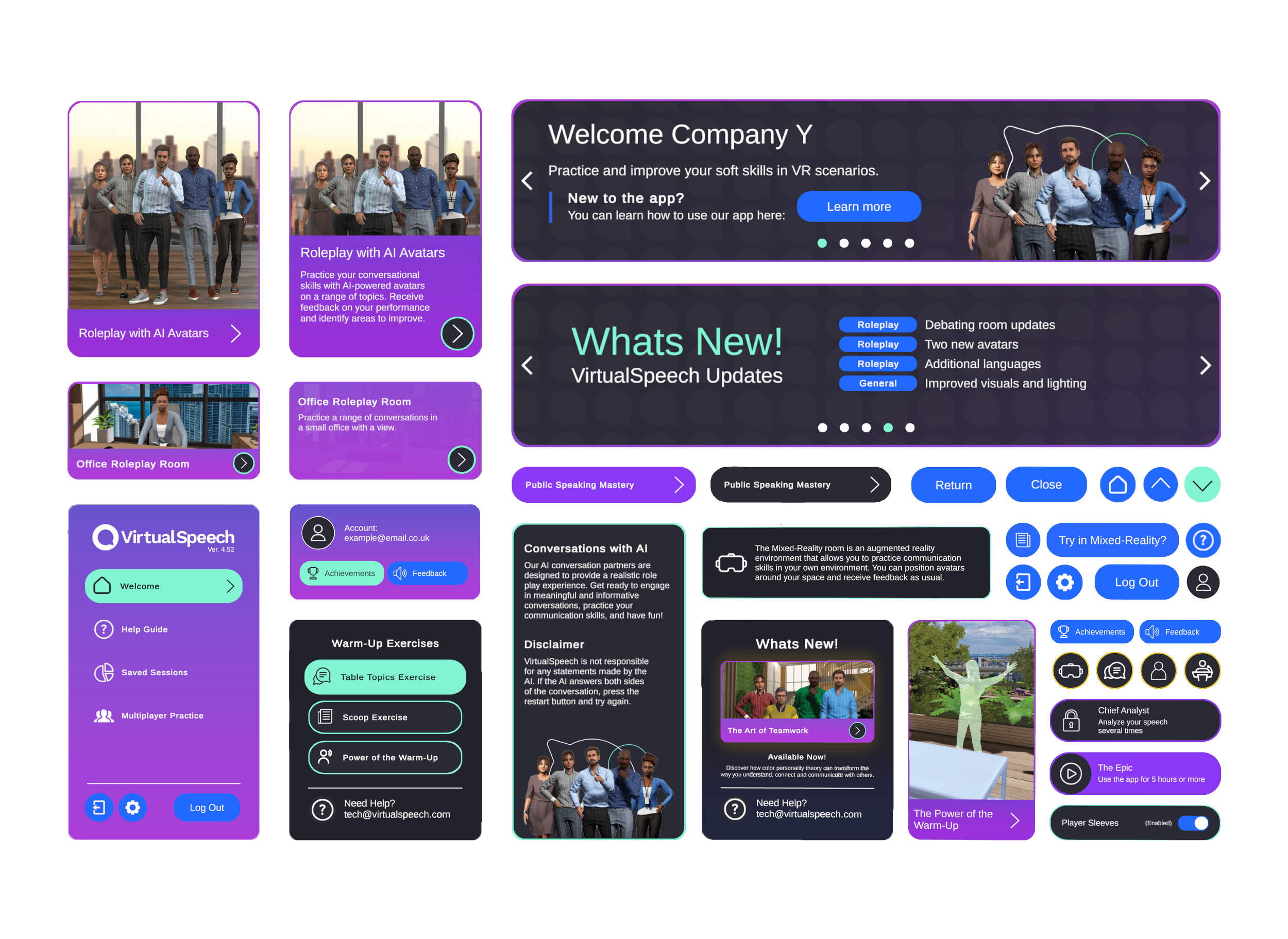 Virtualspeech is a training app for professional development that uses E-Learning, Generative AI, Virtual Reality, and Mixed Reality. I was brought on as their UI/UX designer to redesign the app to improve user experience, content organization, and data visualization on all platforms.