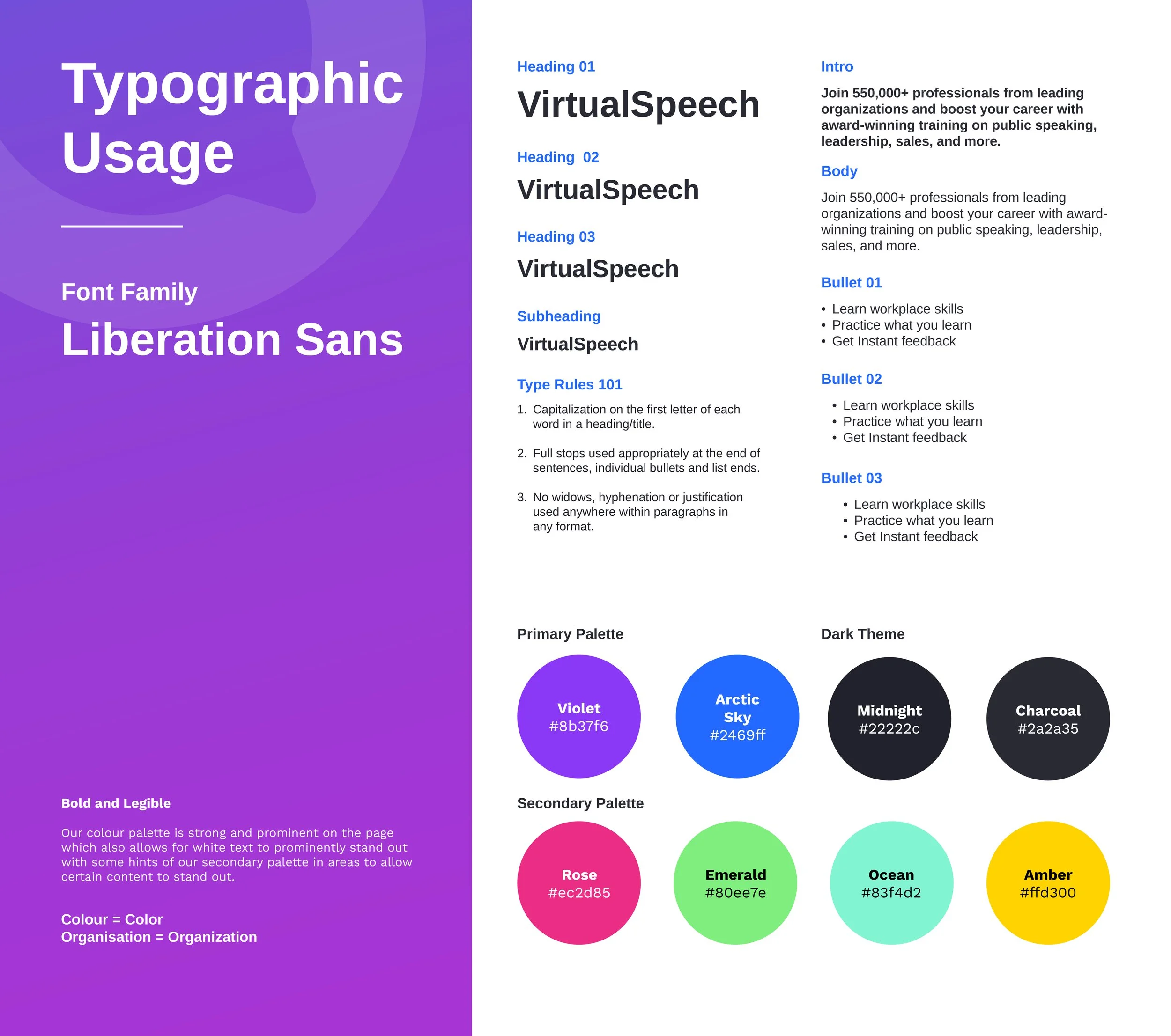 VirtualSpeech provides more than 15 courses, each featuring a mix of exercises and content. These courses include sections like ‘AI Roleplays,’ ‘Practice Rooms,’ and scripted e-learning. I created a main navigation on the left, with primary sections on the cover and sub-content within those sections, creating a clear content hierarchy.
