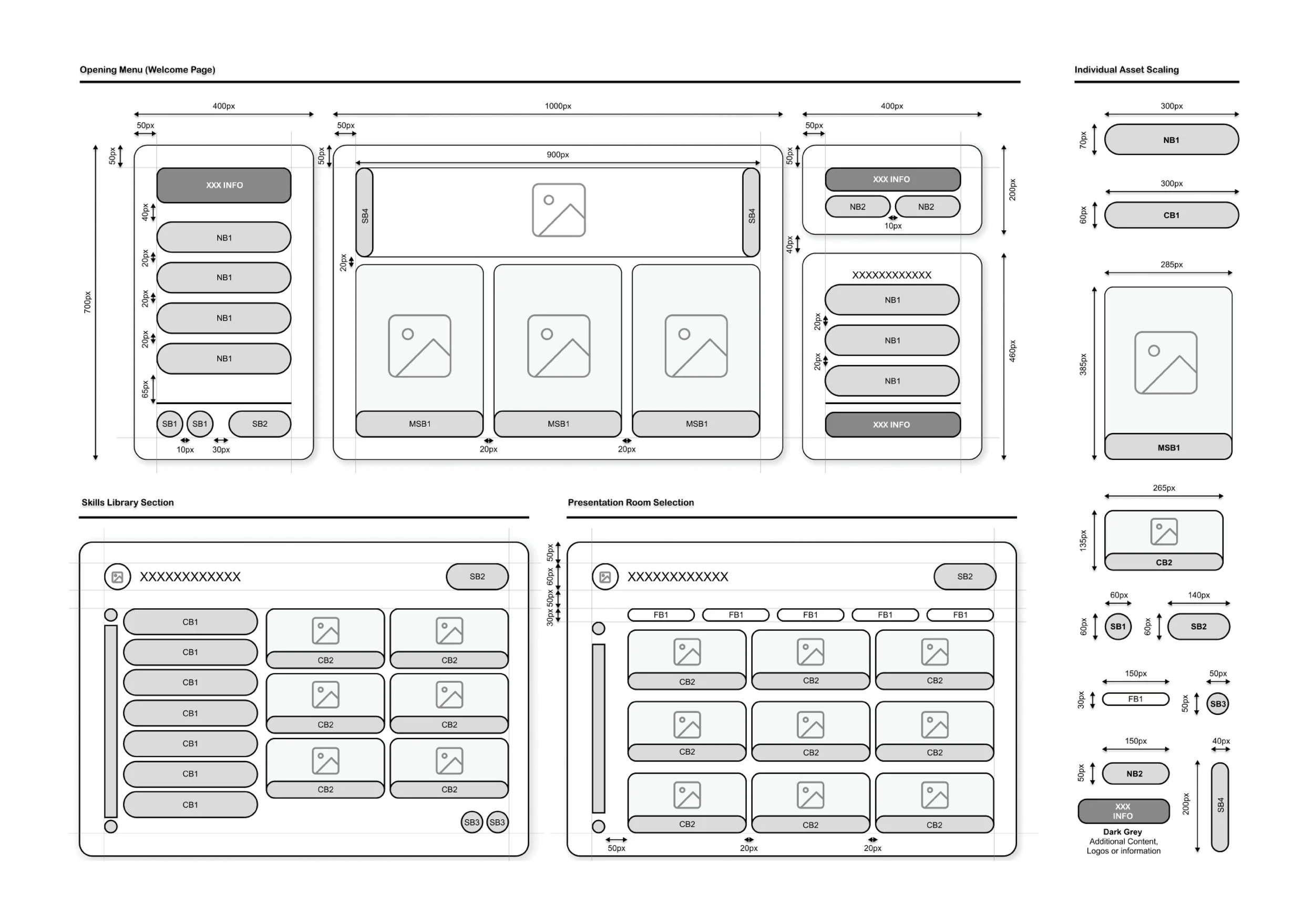 After the concepts were approved for development, I focused on creating the scaling, layout, and wireframes needed for the Unity project. This step was crucial for starting to build in the editor, ensuring a smooth workflow.